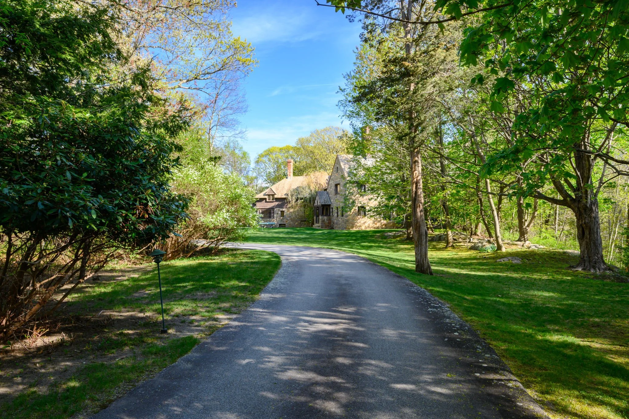 Built tennis court with stone terrace overlooking court, and 220-volt line for lights, 1986